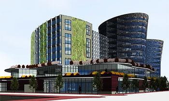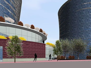 The Complex consist of a hotel, a botanic garden/farm, a shopping center, a plaza, and two high rise residential buildings which serve as a signifier of Union Market. The Botanic Garden/Farm is connected with the market, serving as a show room for any new seasonal products: locally grown fruits and vegetables. The Plaza becomes an ice rink, an attraction which draws people during winter and keeps the place active throughout the whole year.
